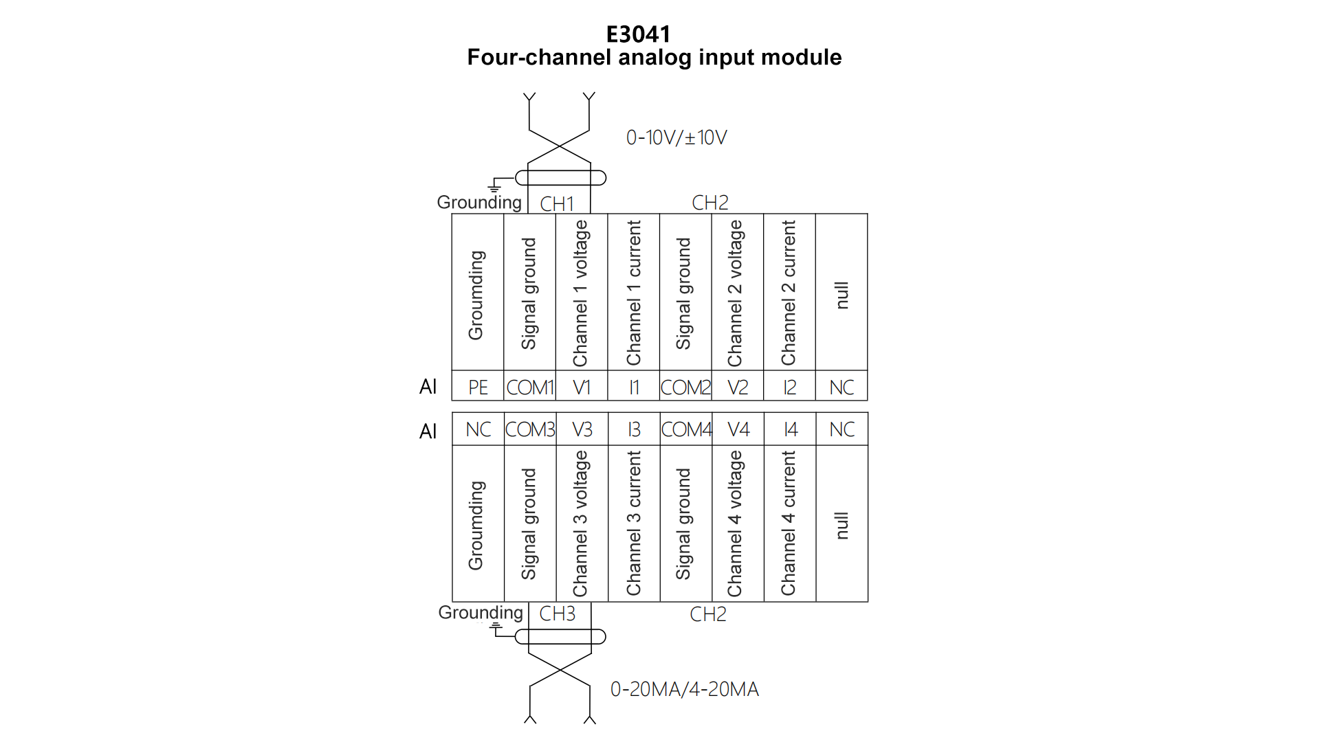 Horizontal Multi-Functional Distributed I/O, 4 analog input channels, current & voltage type, 12-bit resolution, 0~20mA/4~20mA/0~10V, 24VDC