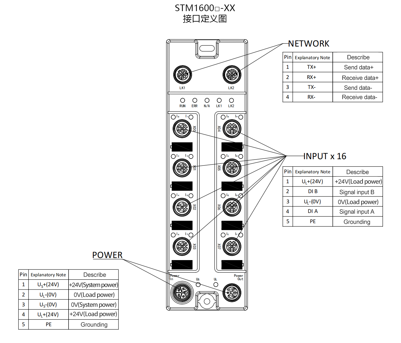 Power interface: 1x5-pin plug-and-unplug terminal