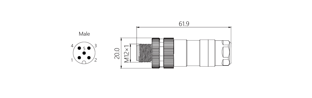 Specification Description: M12 connector, straight pin, screw connection, A-Code