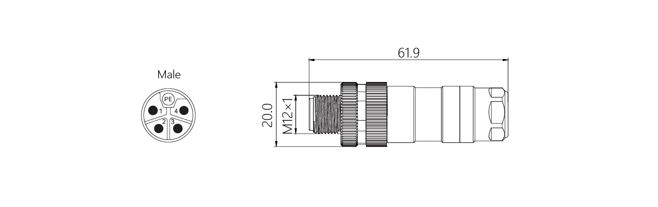Specification Description: M12 connector, straight pin, screw wiring, L-Code