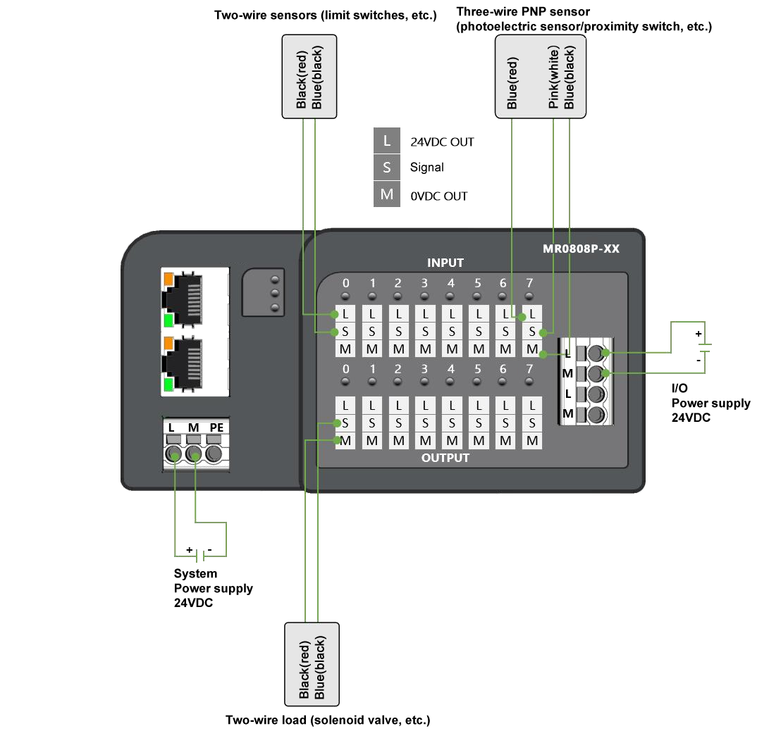 Power interface: Module power supply: 3P European spring terminal; Load power supply: 4P European spring terminal