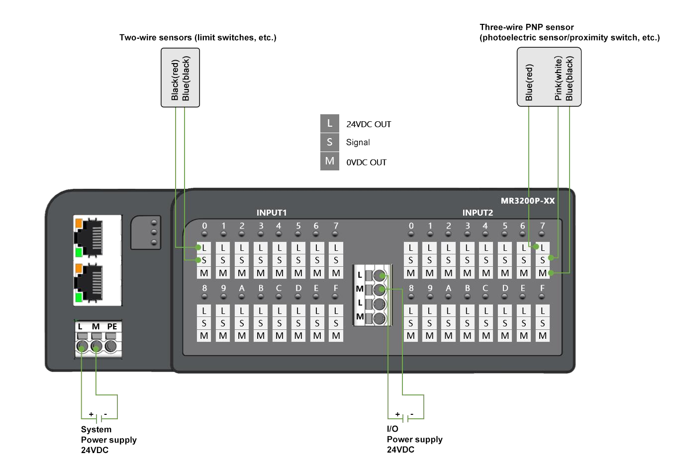 Power interface: Module power supply: 3P European spring terminal; Load power supply: 4P European spring terminal