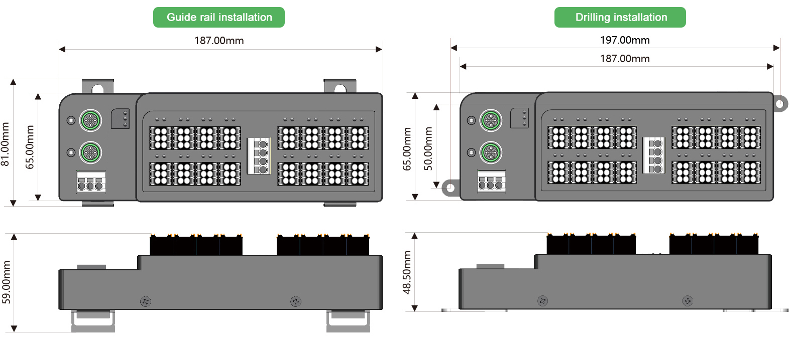 Installation Method: DIN35 rail installation or double-sided ear drilling installation