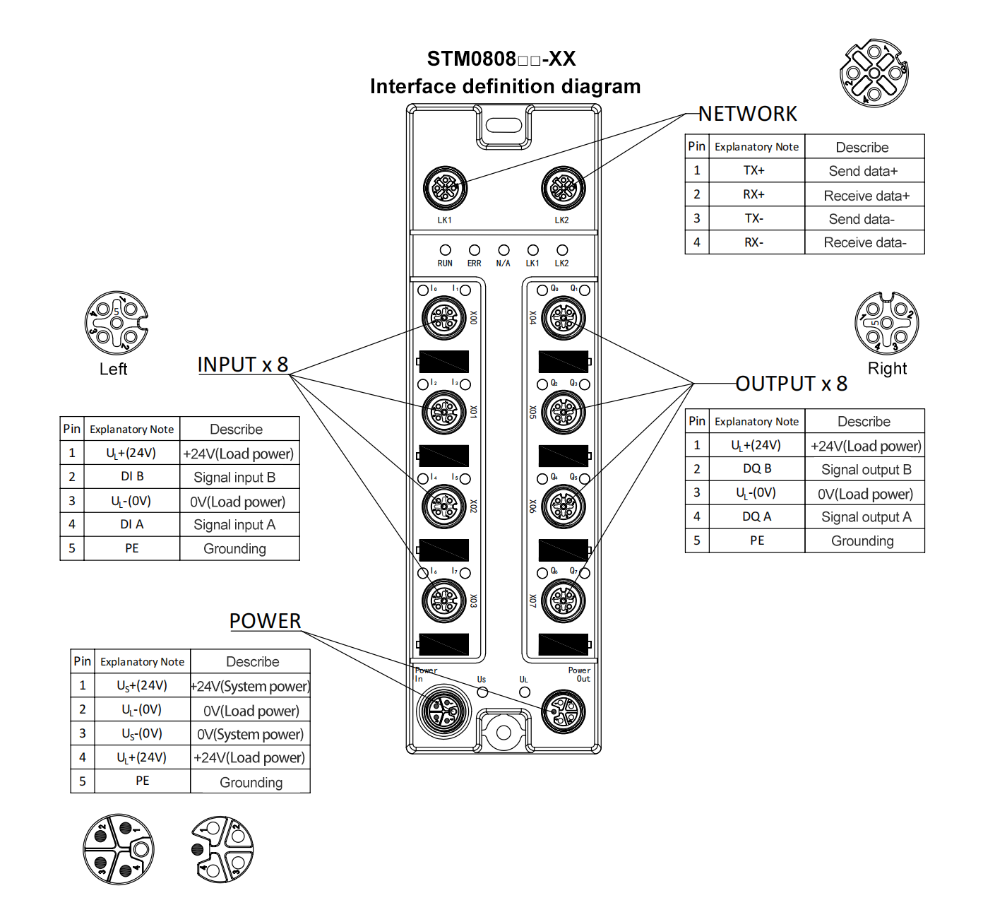 I/O Terminals: 8×M12, A-Code, 5-pin