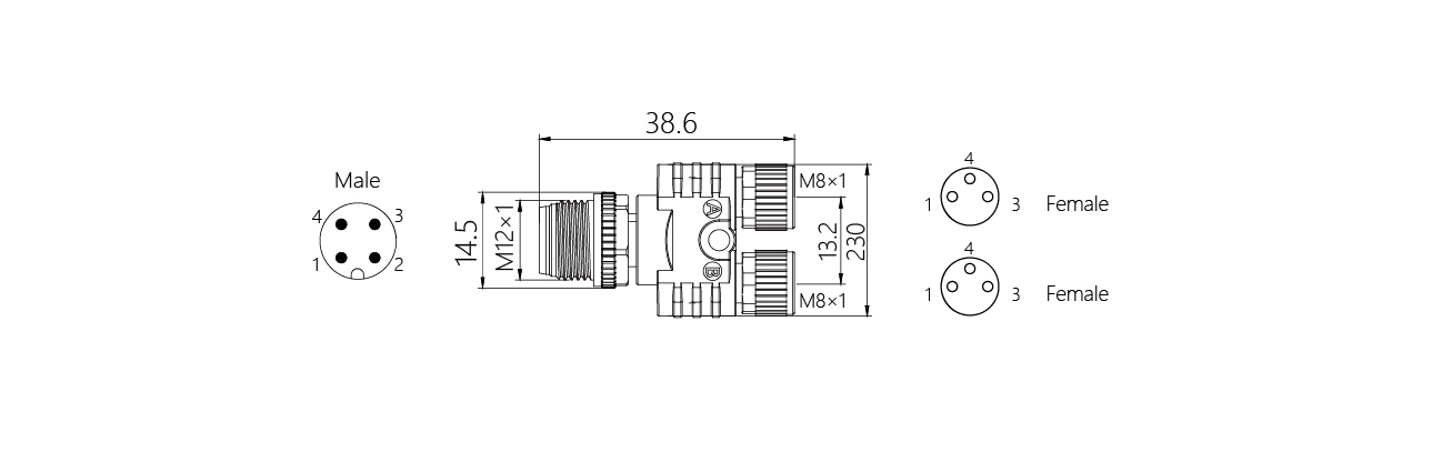 Specification Description: Y-type splitter, M12 to M8, A-Code